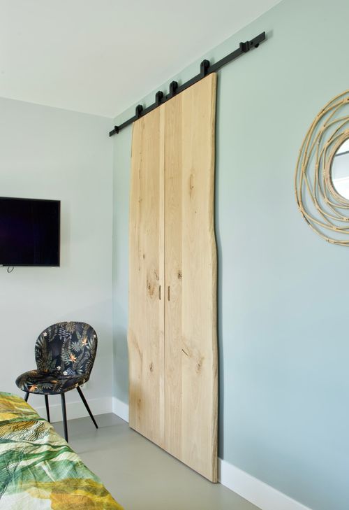 Het badmeubel en de planken in de nis vervaardigden wij eruit en tot slot maakten we deuren voor de inloopkast om het van de slaapkamer afsluiten. De inloopkast vormt een prachtig contrast met de rustige lichte slaapkamer door zijn zwarte kasten. De ruimte in de hoek is optimaal benut doordat de kast doorloopt tegen de achterwand. De spiegeldeur zorgt voor een mooie onderbreking in de verder zwarte kast.
